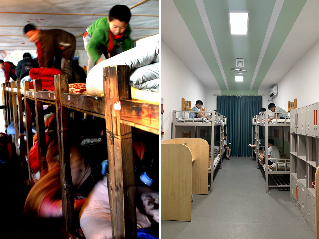 縉云縣東渡鎮(zhèn)長(zhǎng)坑小學(xué)2005年以前的學(xué)生宿舍(左),以及現(xiàn)在的學(xué)生宿舍(右) 學(xué)校供圖