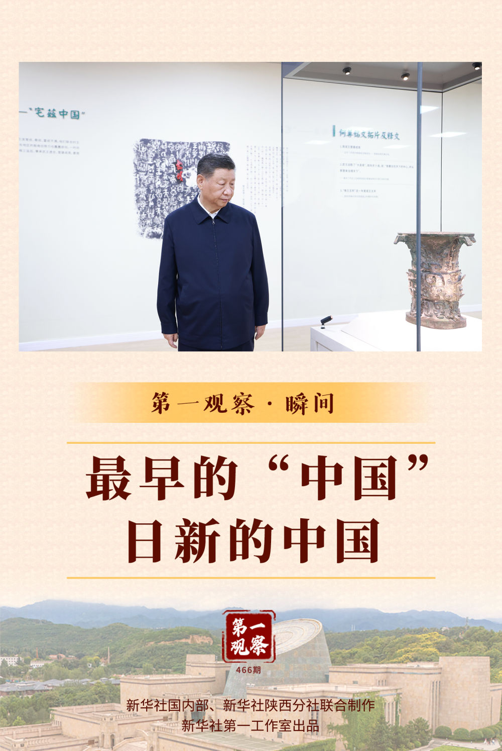 新華社記者的鏡頭定格了這樣的瞬間:總書記在一件國寶級青銅器——何尊前駐足凝視,細(xì)致察看。