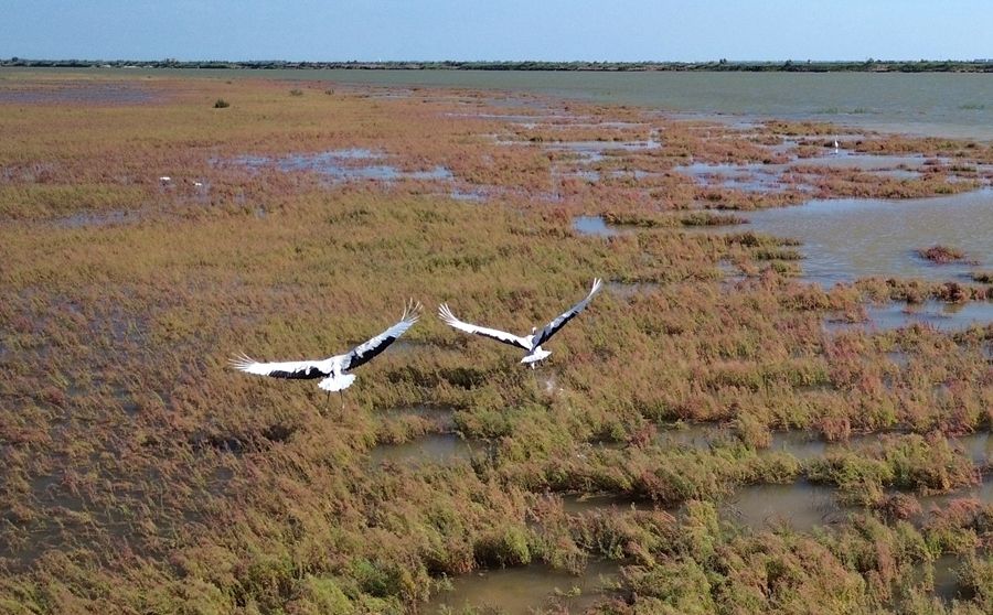 “我們這里是中國東方白鸛之鄉(xiāng)、黑嘴鷗繁殖地,去年以來還新發(fā)現(xiàn)了火烈鳥、白鵜鶘、勺嘴鷸?!碑?shù)刎撠熗窘榻B,這些年通過退耕還濕、退養(yǎng)還灘,推進濕地修復,生態(tài)環(huán)境越來越好。