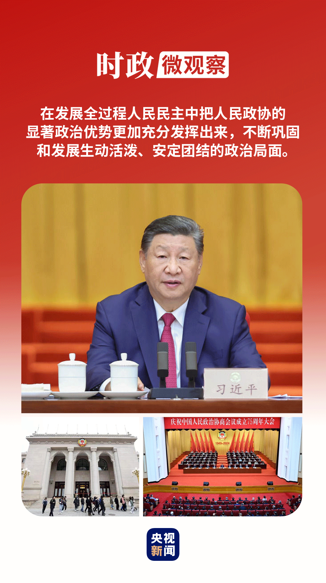 在慶祝大會上,習(xí)近平總書記強調(diào):“我們要更加堅定道路自信、理論自信、制度自信、文化自信,在發(fā)展全過程人民民主中把人民政協(xié)的顯著政治優(yōu)勢更加充分發(fā)揮出來,不斷鞏固和發(fā)展生動活潑、安定團結(jié)的政治局面?!?/p>
