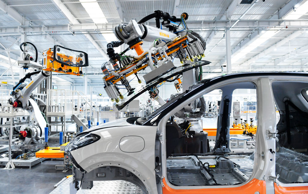 在廣西柳州市上汽通用五菱精益智造工廠,機(jī)器人為汽車裝配擋風(fēng)玻璃(2024年5月9日攝)。上汽通用五菱建成的“柳州研發(fā)和零部件生產(chǎn)—印尼整車組裝和市場銷售”產(chǎn)業(yè)鏈,是中國與東盟國家不斷深化投資和產(chǎn)能合作的生動縮影。