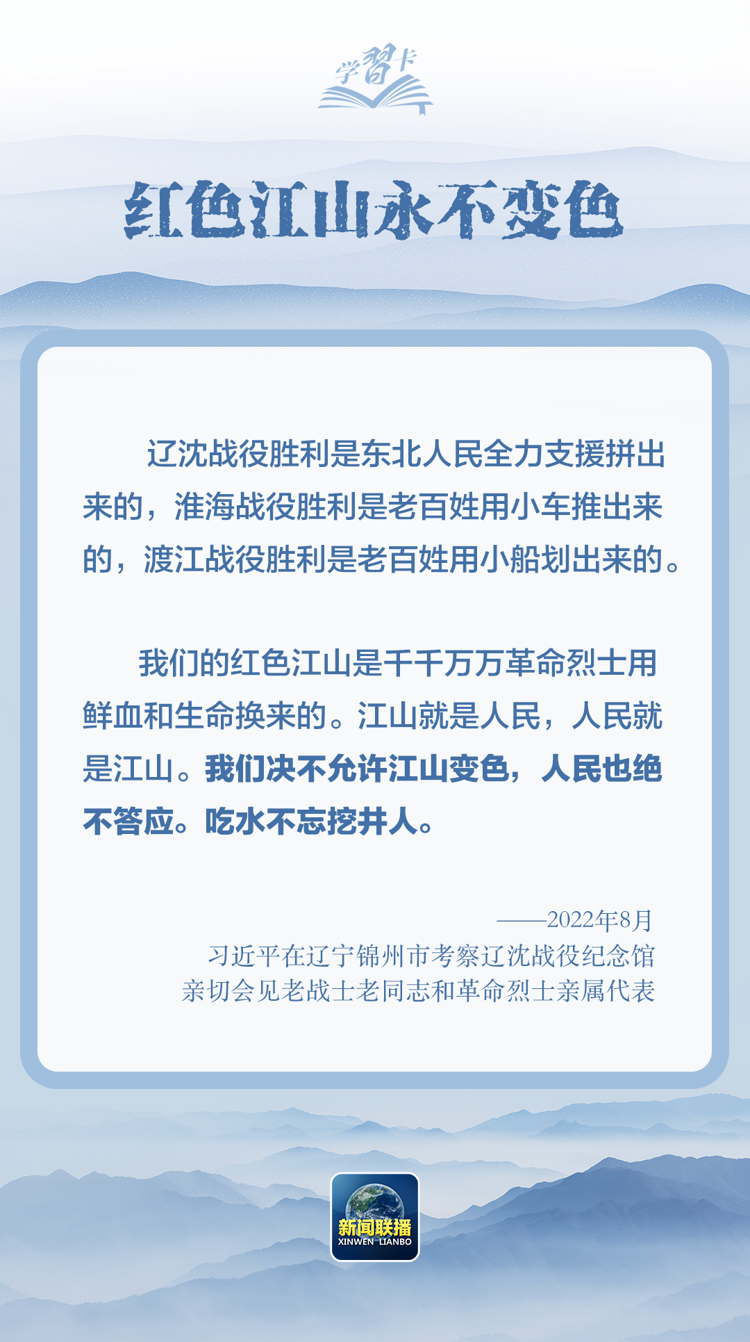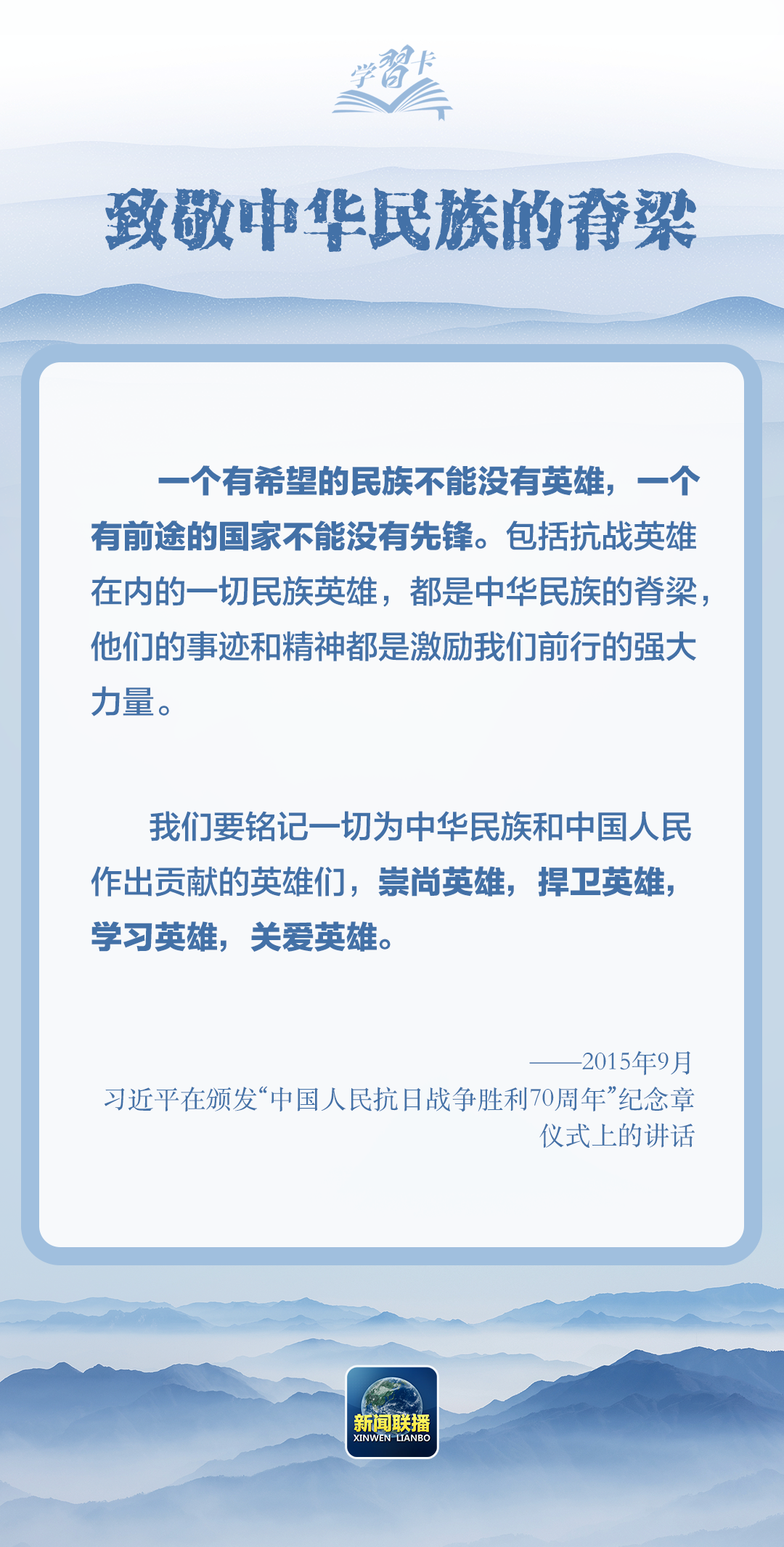 “對一切為國家、為民族、為和平付出寶貴生命的人們,不管時(shí)代怎樣變化,我們都要永遠(yuǎn)銘記他們的犧牲和奉獻(xiàn)。”