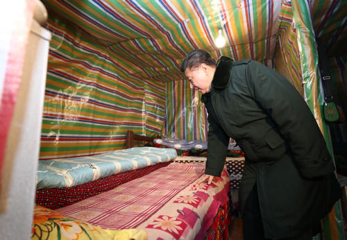 一天之內(nèi),橫跨兩省市,足跡覆蓋農(nóng)村、社區(qū)、學(xué)校等7處考察點(diǎn),冒著嚴(yán)寒而往,沐著夜色而歸,只因“心里一直惦念著災(zāi)區(qū)的人民群眾”。