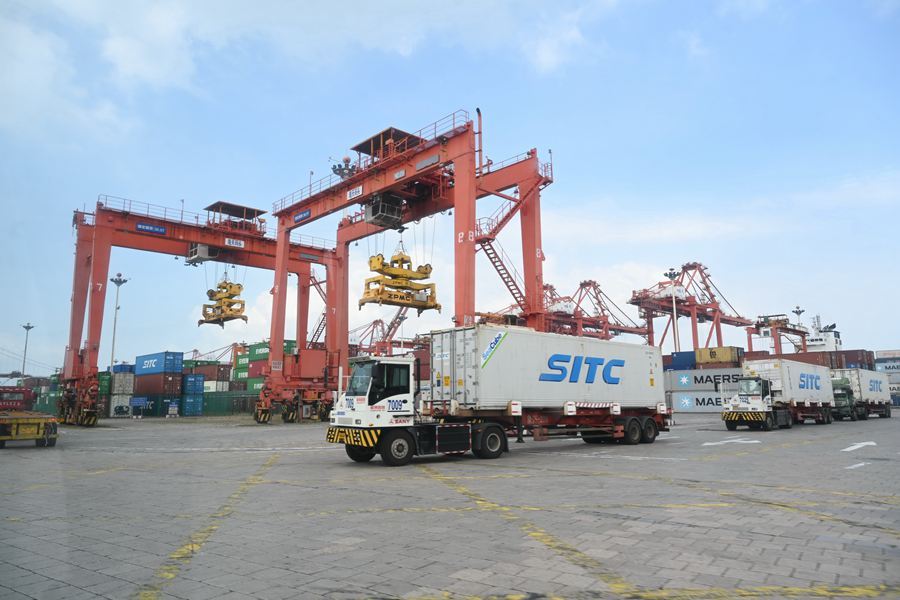 2024年8月6日拍攝的廈門(mén)港海天碼頭作業(yè)區(qū)一角。新華社記者 林善傳 攝