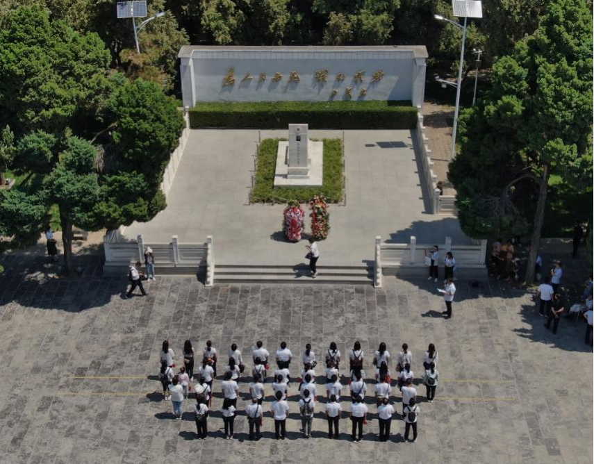 2021年6月24日,參觀者在位于河南省蘭考縣的焦裕祿紀念園瞻仰焦裕祿烈士墓(無人機照片)。新華社記者 李安 攝