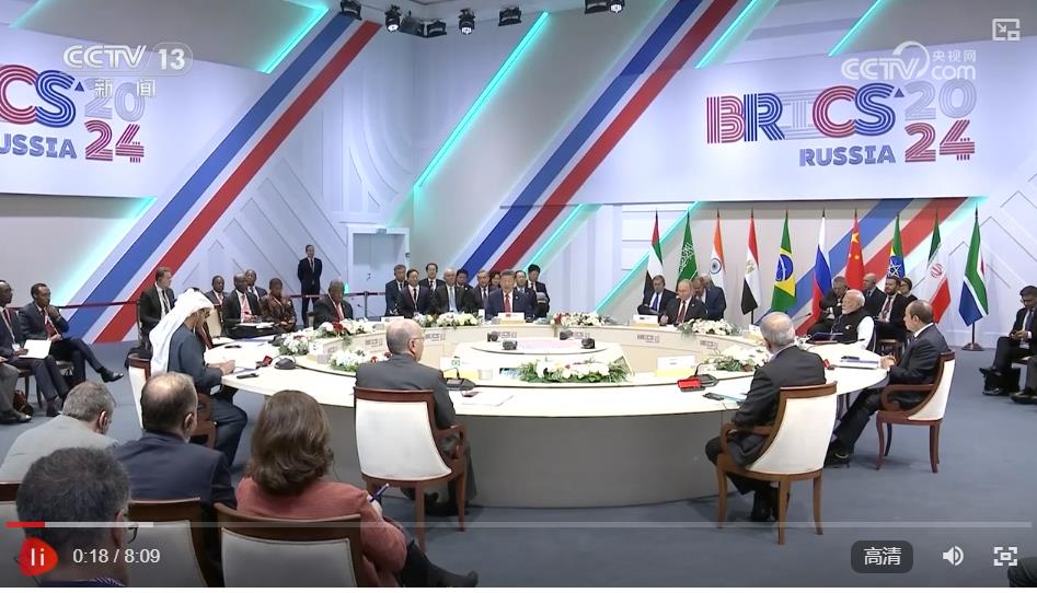 當(dāng)?shù)貢r(shí)間10月23日上午,金磚國家領(lǐng)導(dǎo)人第十六次會(huì)晤在喀山會(huì)展中心舉行。俄羅斯總統(tǒng)普京主持會(huì)晤。中國國家主席習(xí)近平、巴西總統(tǒng)盧拉(線上)、埃及總統(tǒng)塞西、埃塞俄比亞總理阿比、印度總理莫迪、伊朗總統(tǒng)佩澤希齊揚(yáng)、南非總統(tǒng)拉馬福薩、阿聯(lián)酋總統(tǒng)穆罕默德等出席。