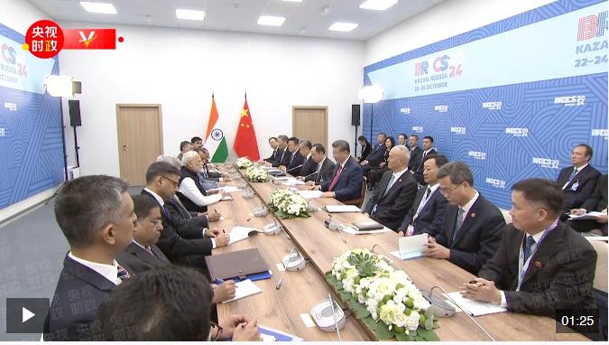 當(dāng)?shù)貢r(shí)間10月23日,國家主席習(xí)近平在喀山出席金磚國家領(lǐng)導(dǎo)人會(huì)晤期間會(huì)見印度總理莫迪。