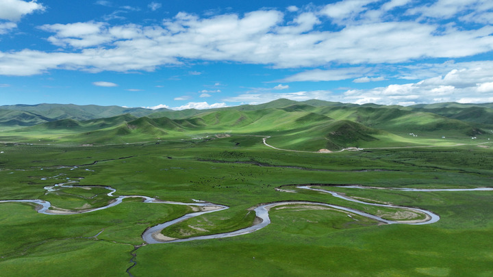 這是2023年7月6日拍攝的甘肅省甘南藏族自治州瑪曲縣阿萬倉濕地景色(無人機照片)?,斍h是黃河上游重要的水源涵養(yǎng)區(qū)和生態(tài)功能區(qū),被稱為“黃河之腎”。多年來,甘肅省實施退牧還草、退化草原生態(tài)修復(fù)等治理工程,草原生態(tài)環(huán)境明顯改善。