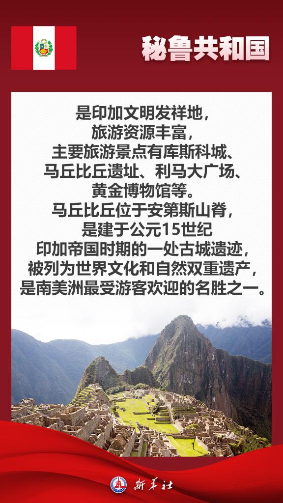 應(yīng)秘魯共和國總統(tǒng)博魯阿爾特邀請,國家主席習(xí)近平將于11月13日至17日赴利馬出席亞太經(jīng)合組織第三十一次領(lǐng)導(dǎo)人非正式會議并對秘魯進(jìn)行國事訪問。秘魯位于南美洲西部,是印加文明發(fā)祥地,也是最早同新中國建交的拉美國家之一。關(guān)于秘魯,七張海報帶你了解更多——