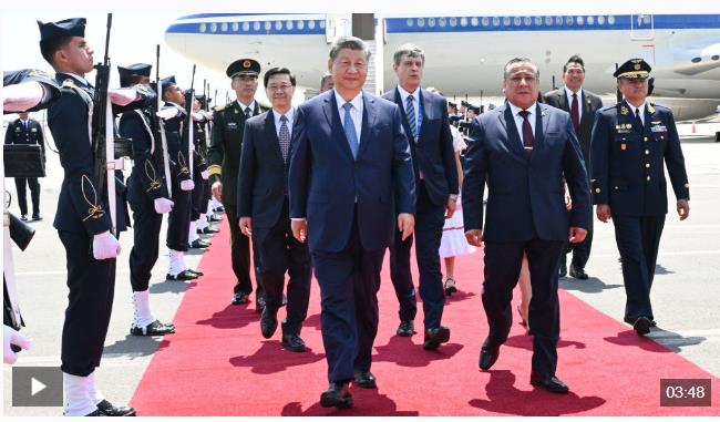 習(xí)近平發(fā)表機(jī)場書面講話,向秘魯政府和秘魯人民致以誠摯問候和良好祝愿。