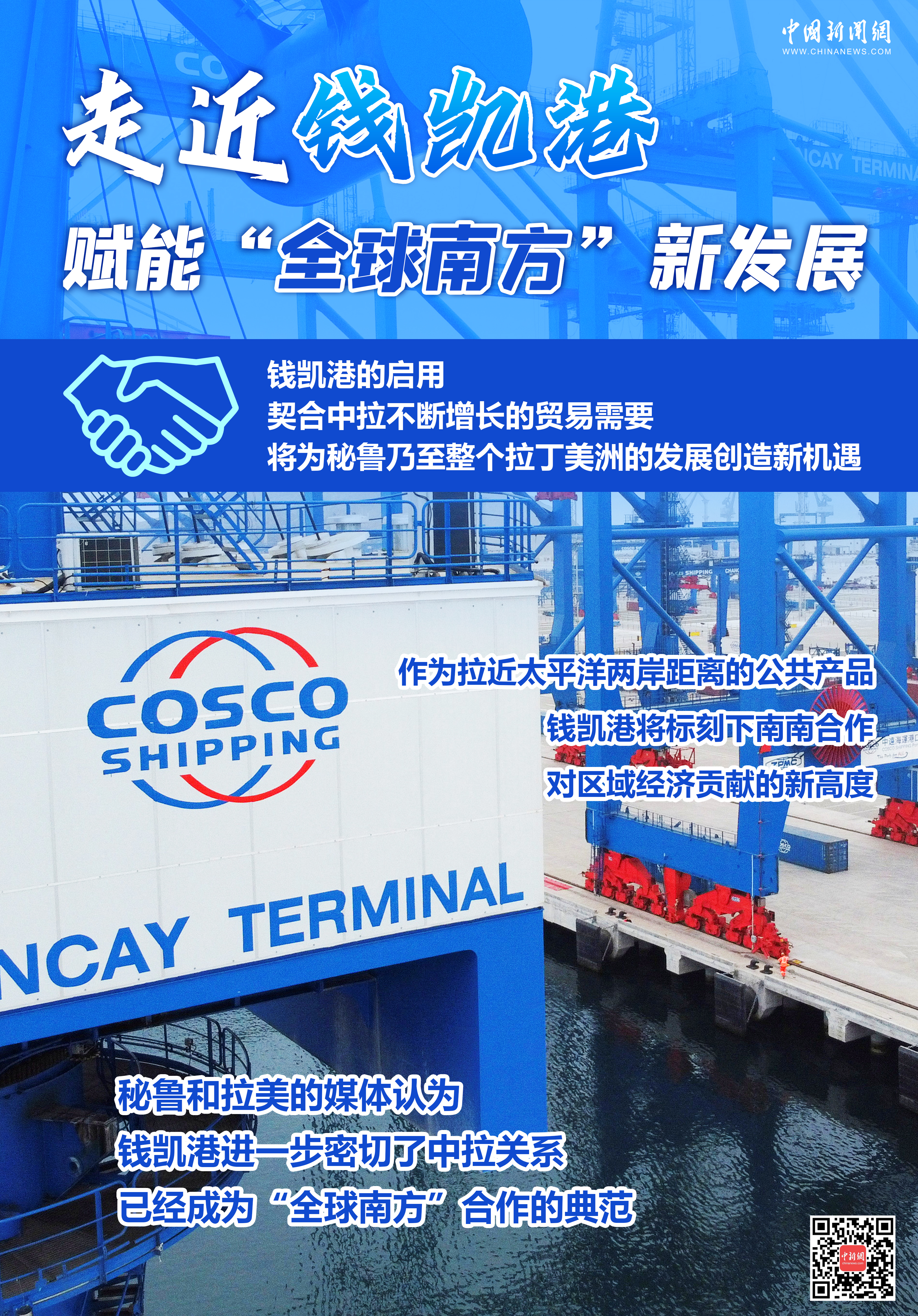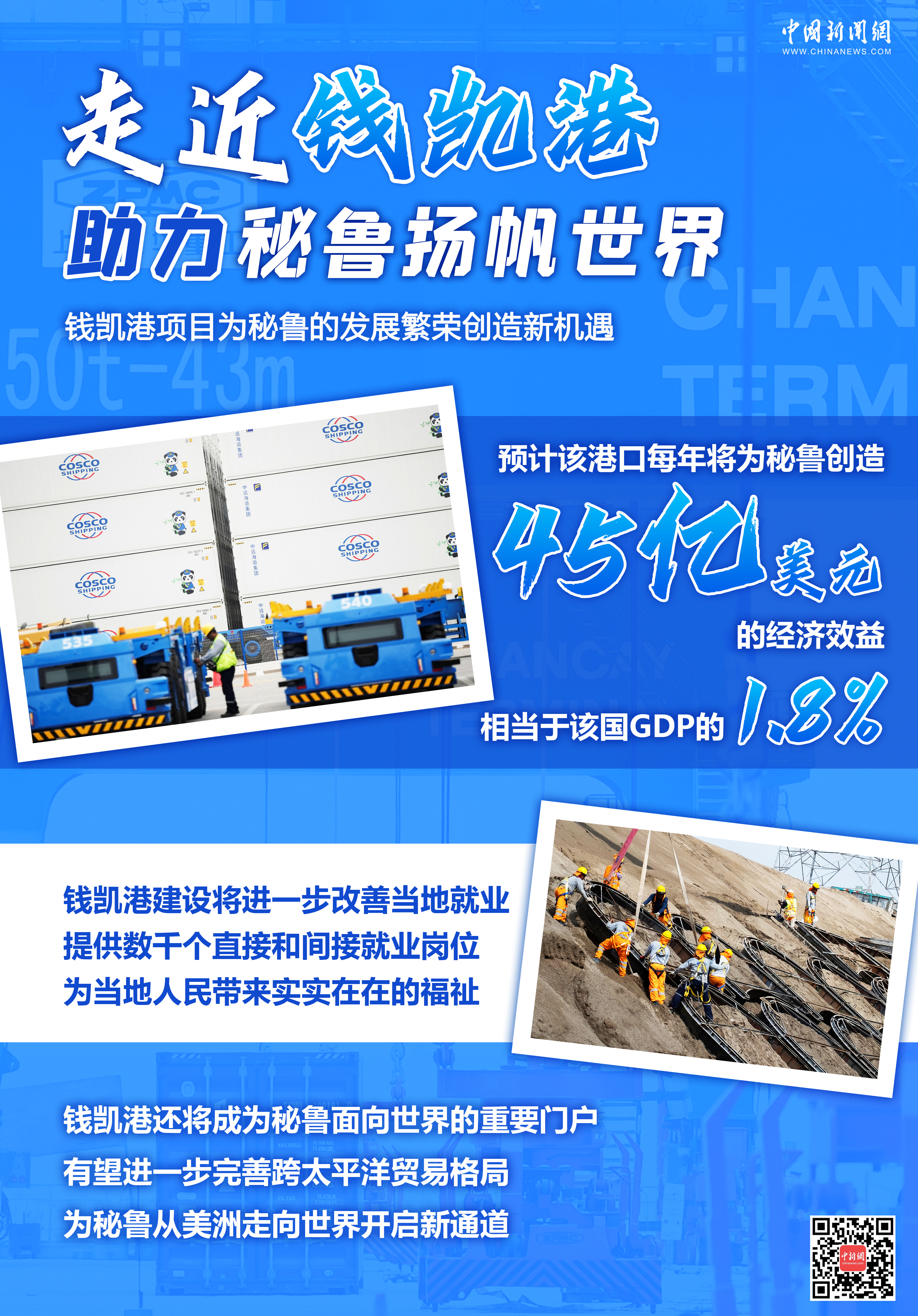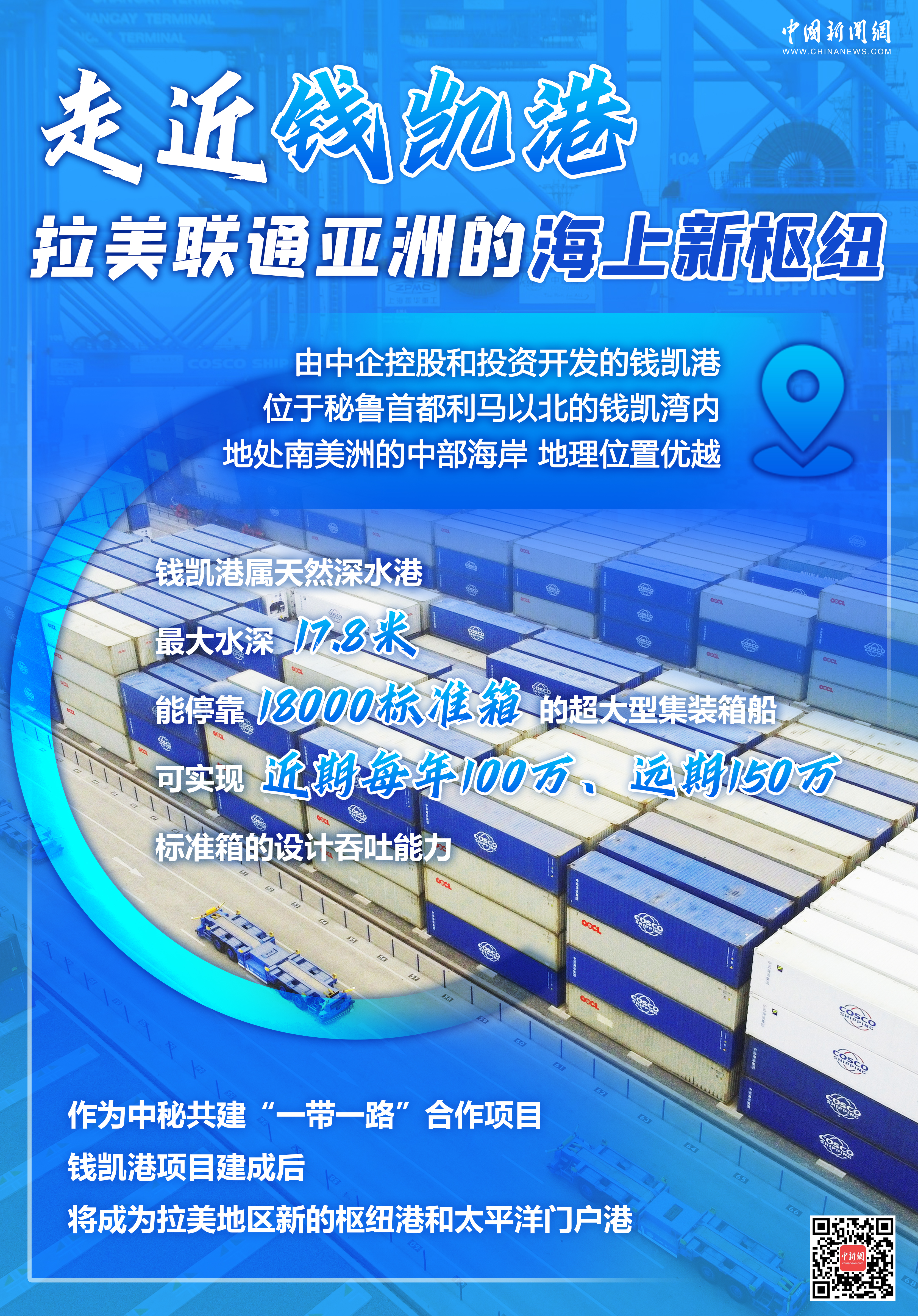 錢凱港項目是中國和秘魯共建“一帶一路”合作項目,建成后將成為拉美地區(qū)新的樞紐港和太平洋門戶港,可大幅縮短秘魯到亞洲的直航時間。