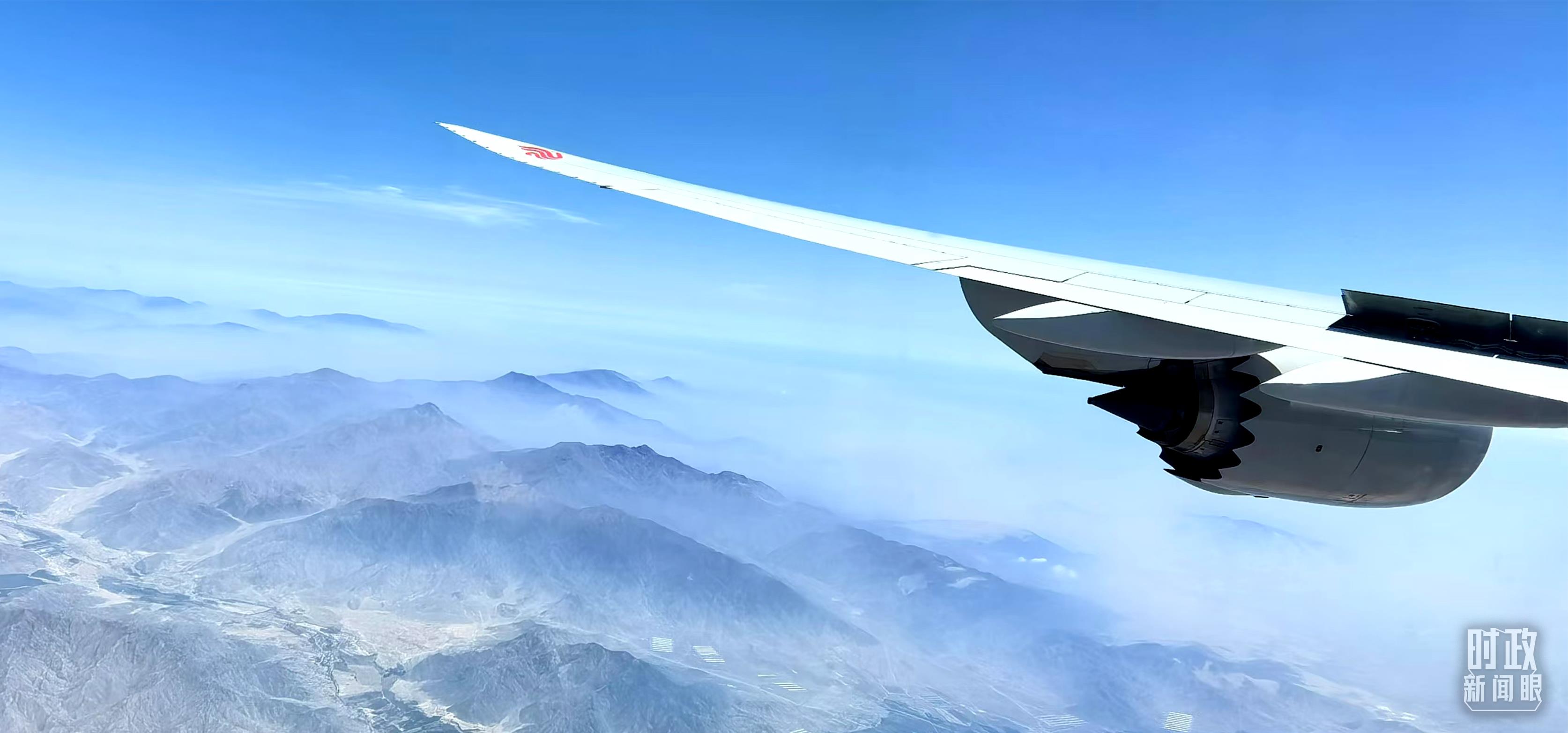 △習主席乘坐的專機即將抵達利馬。(總臺央視記者李錚拍攝)
