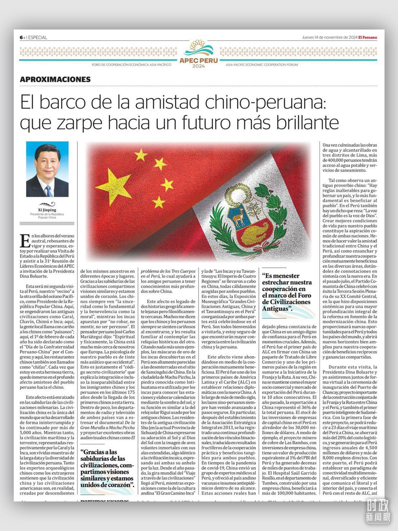“我謹向您發(fā)出最熱情的邀請,希望您撥冗出席2024年亞太經(jīng)合組織(APEC)領(lǐng)導人非正式會議,并對秘魯再次進行國事訪問?!比ツ?1月,秘魯總統(tǒng)博魯阿爾特在舊金山向習主席發(fā)出誠摯邀請。