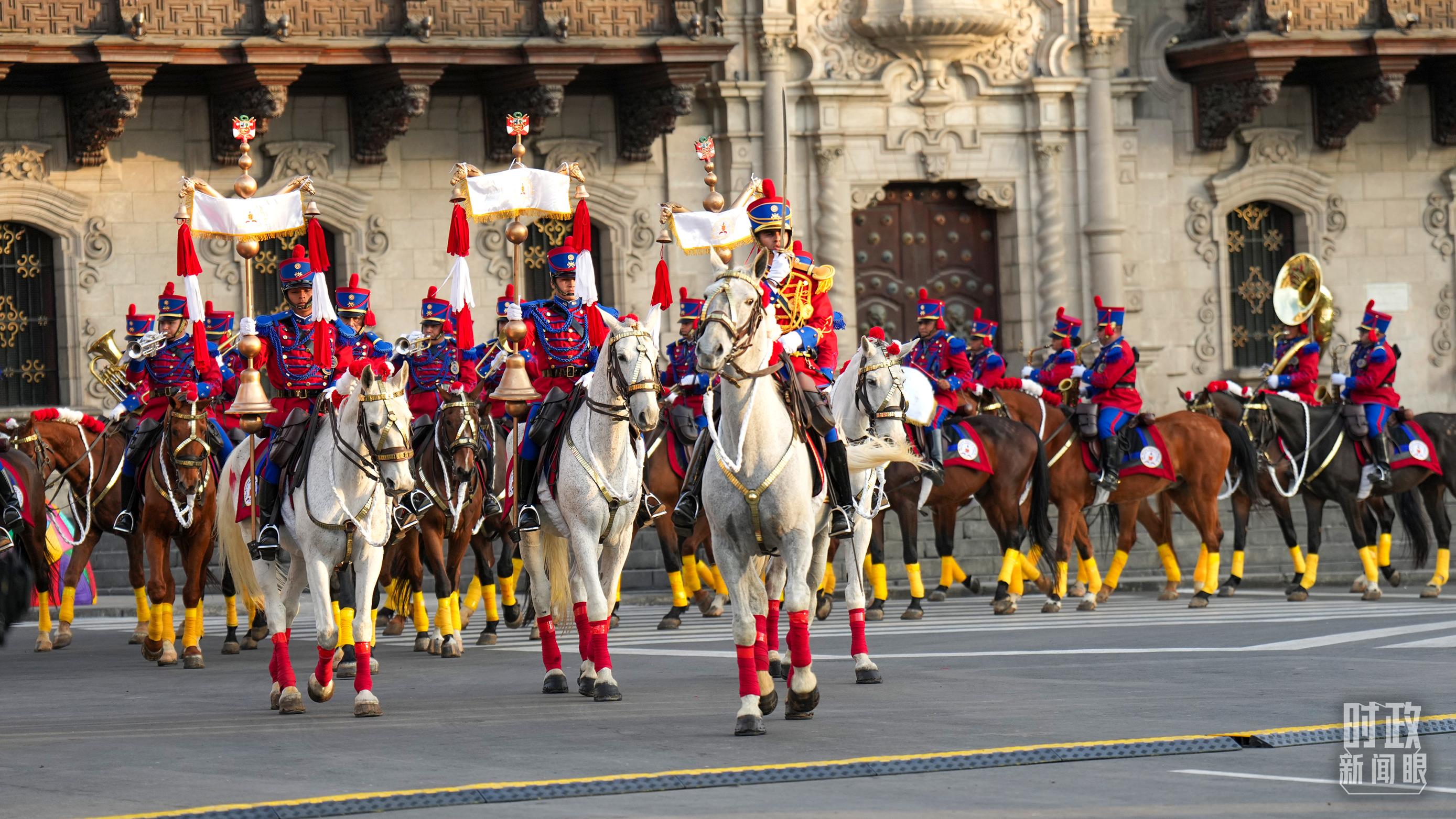 △歡迎儀式上的秘魯騎兵。(總臺記者李晉拍攝)