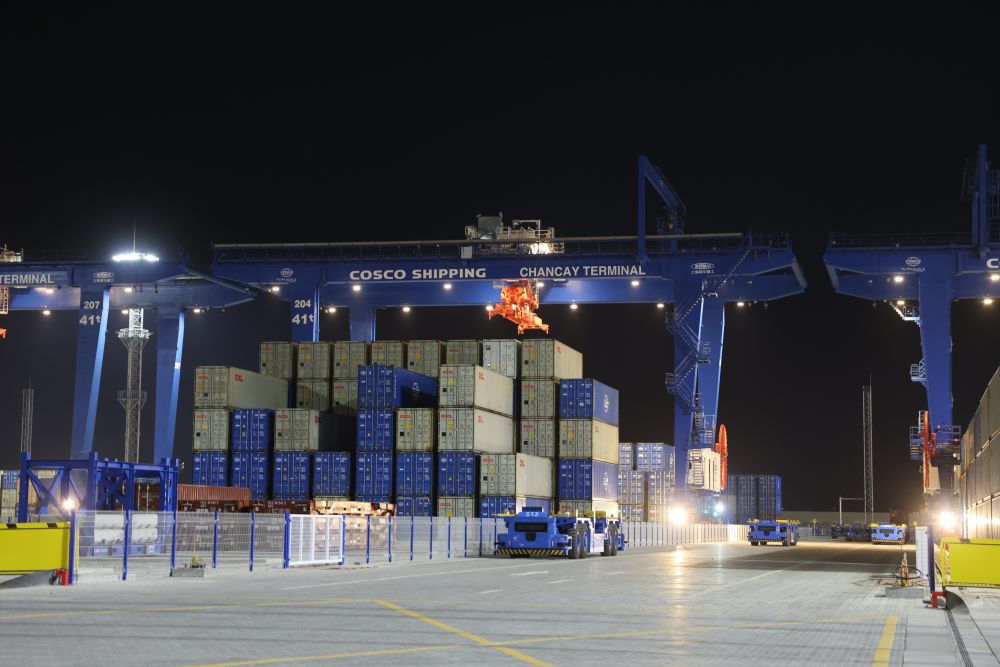 通過大屏幕連線,兩國元首共同下達(dá)開港指令。利馬以北80公里的錢凱港,在夜幕中開啟了港口作業(yè)。
