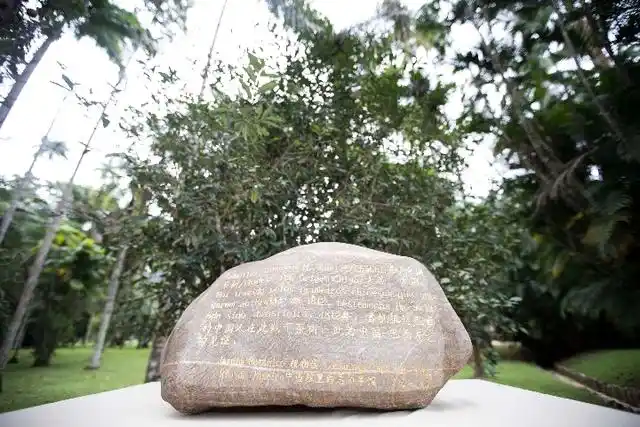 △巴西里約熱內(nèi)盧植物園,來自中國福建的華安石紀(jì)念牌記載:“1812年,首批抵達(dá)巴西的中國人在此栽下茶樹”。