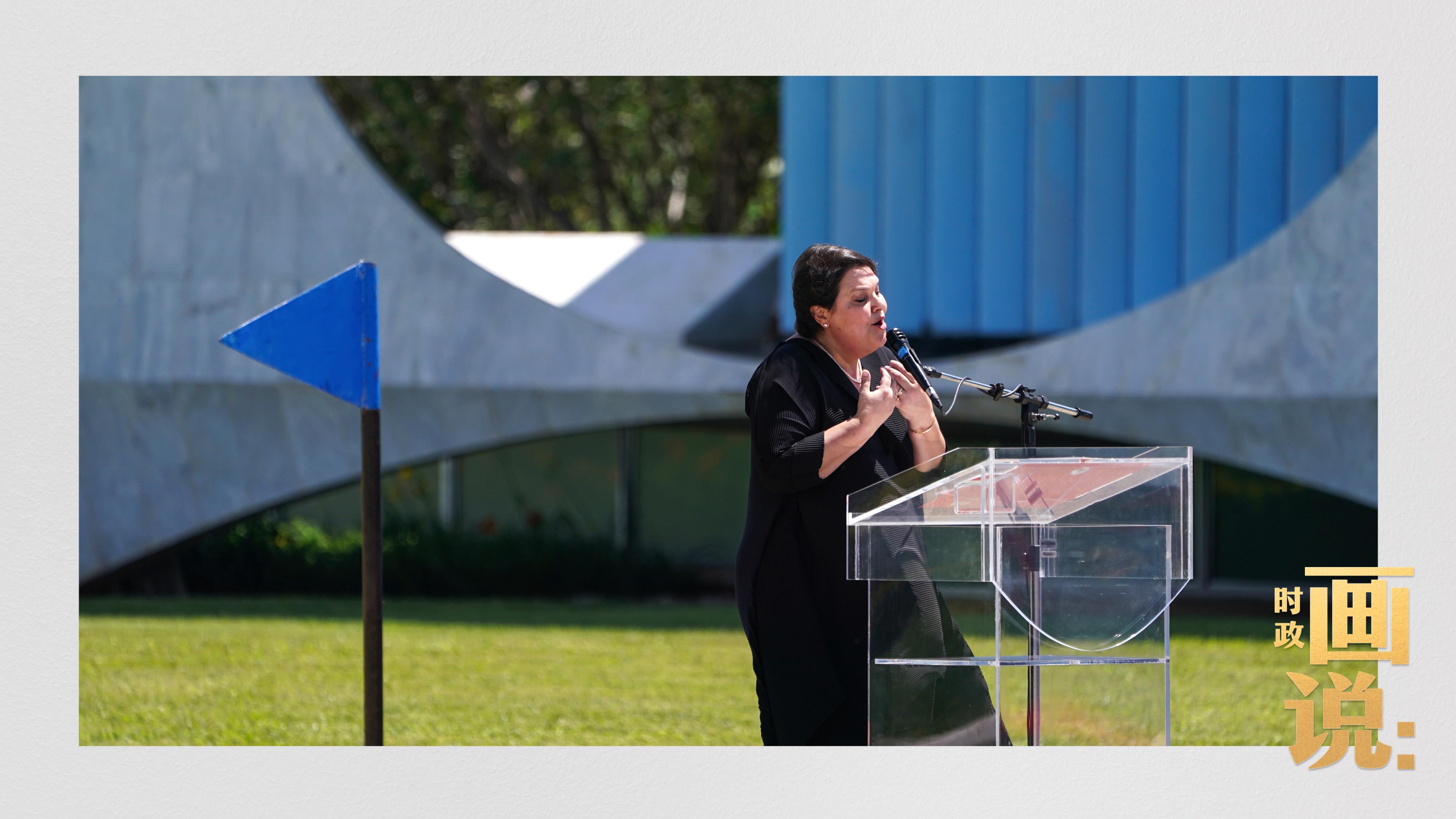 巴西藝術(shù)家用中文現(xiàn)場深情演唱中國經(jīng)典民歌《我的祖國》,這是歡迎儀式的一項特別安排。