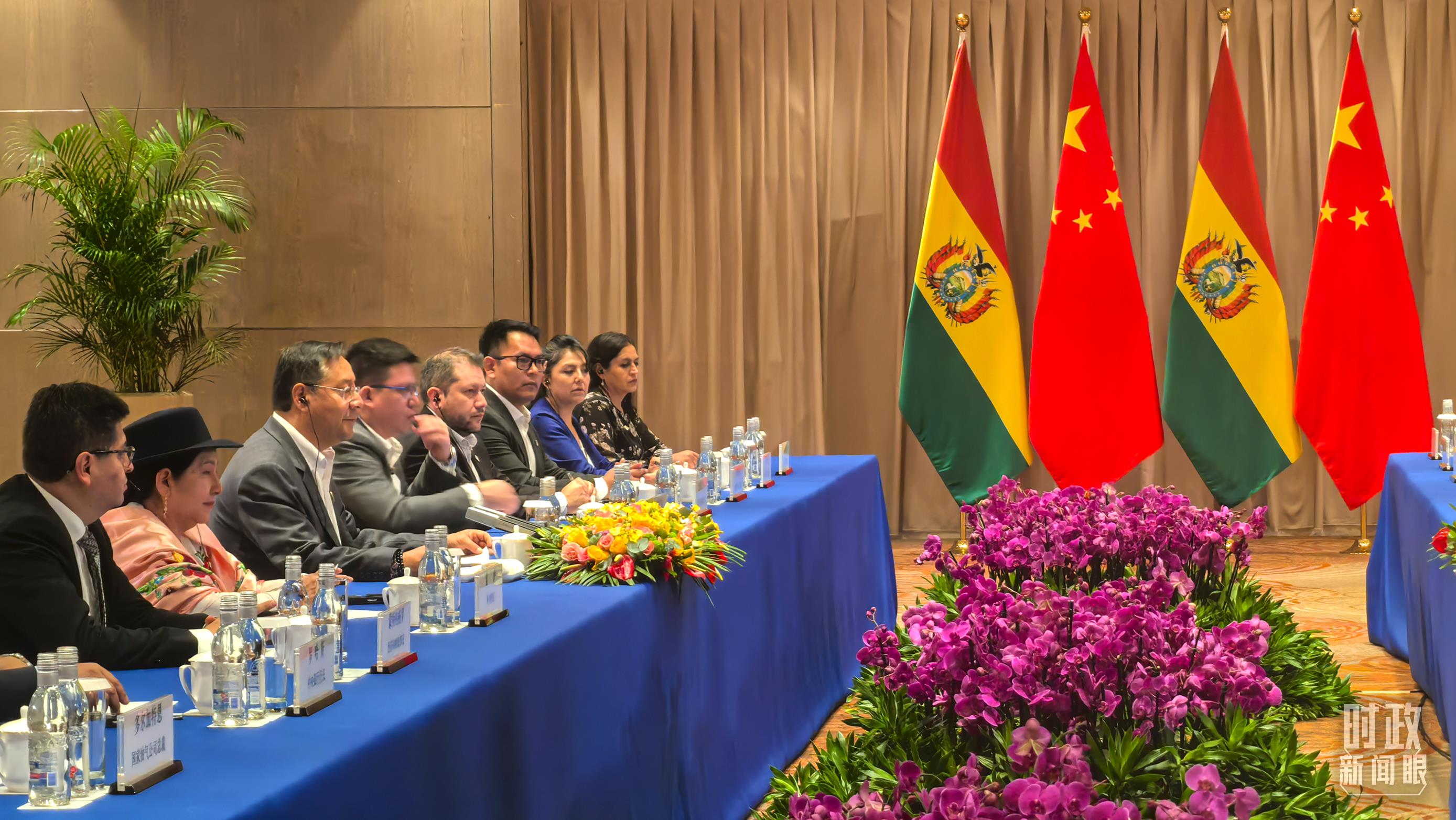 習主席會見玻利維亞總統(tǒng)阿爾塞現(xiàn)場。(總臺央廣記者潘毅拍攝)