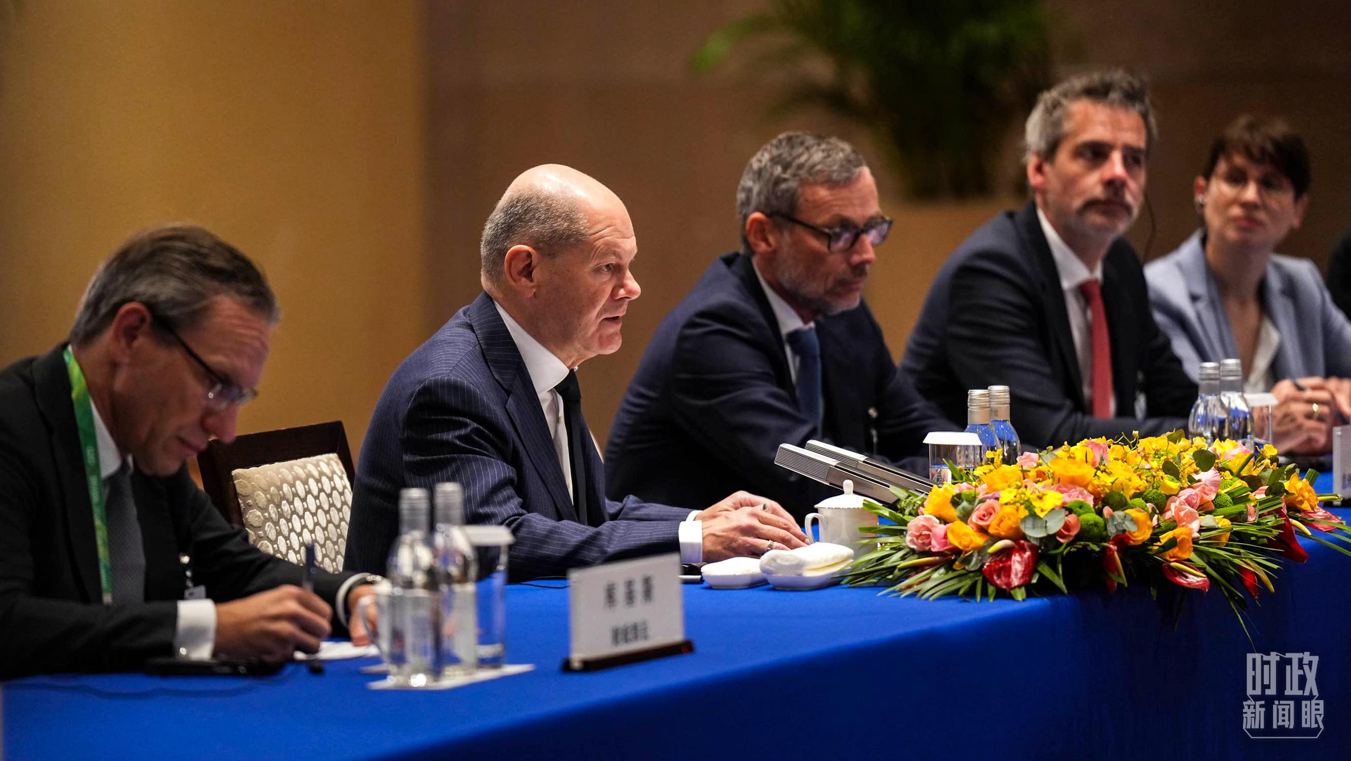 習主席會見德國總理朔爾茨現(xiàn)場。(總臺記者李晉拍攝)