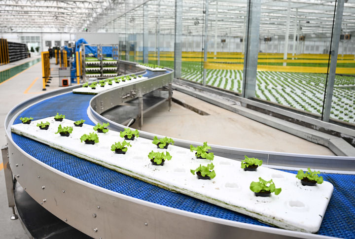 2024年12月12日在內(nèi)蒙古鄂爾多斯市達拉特旗內(nèi)蒙古現(xiàn)代數(shù)字農(nóng)業(yè)科技產(chǎn)業(yè)園拍攝的生菜苗。新華社記者 貝赫 攝