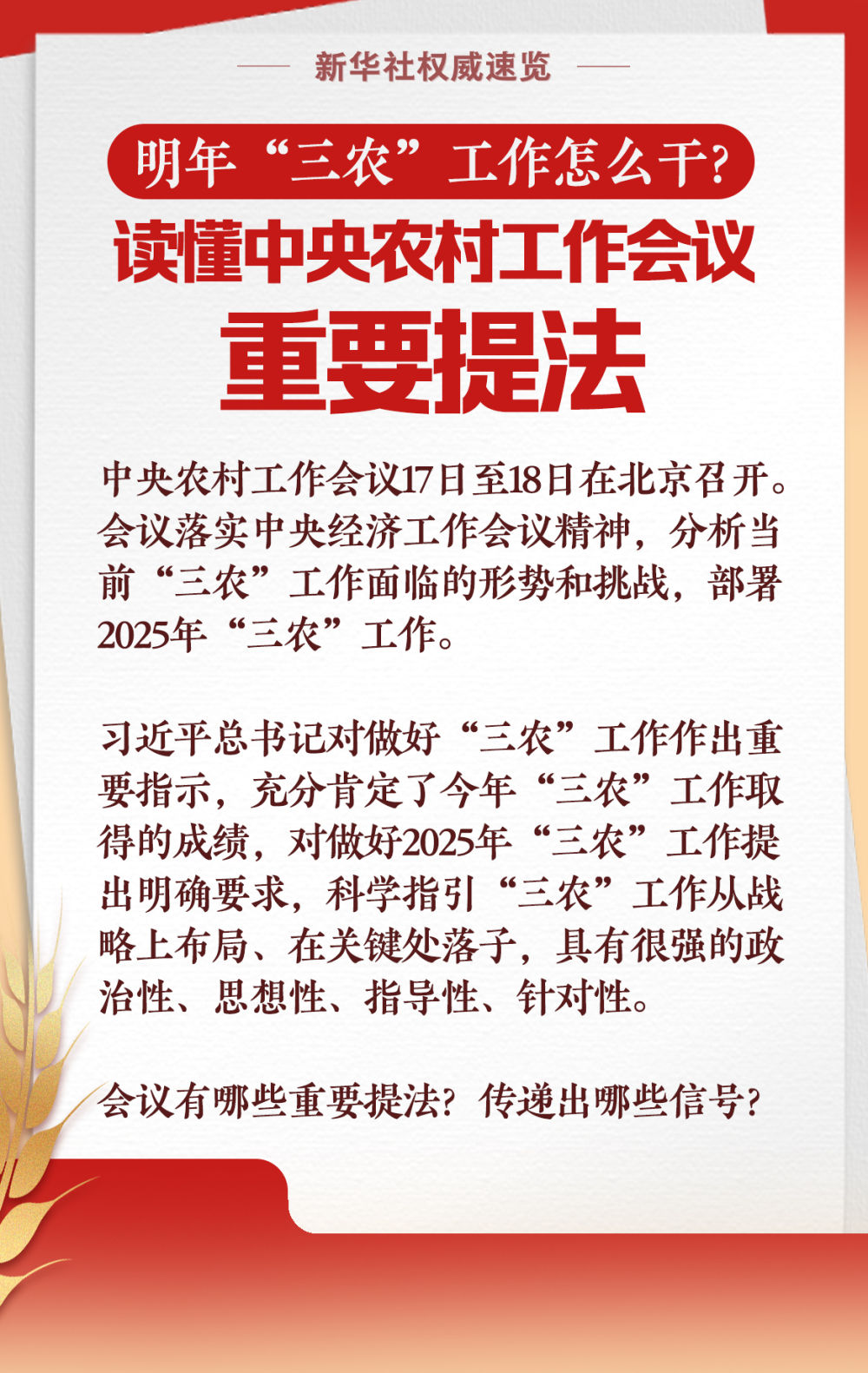 明年“三農(nóng)”工作怎么干?讀懂中央農(nóng)村工作會(huì)議重要提法