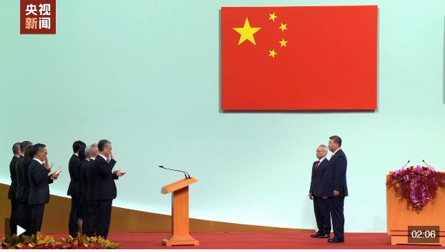習近平主席監(jiān)誓,澳門特別行政區(qū)第六屆政府主要官員在岑浩輝帶領(lǐng)下宣誓就職。
