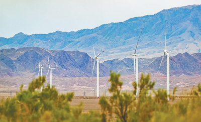 中國(guó)企業(yè)參與投資建設(shè)的哈薩克斯坦謝列克風(fēng)電場(chǎng)。新華社記者 白雪騏攝