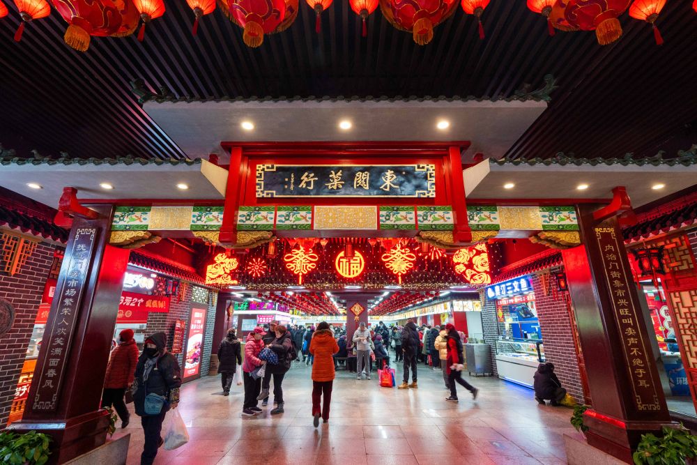 2025年1月22日,游客在沈陽故宮非遺年貨市集游覽消費(fèi)。