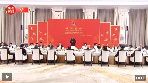 2月7日中午,國家主席習近平和夫人彭麗媛在黑龍江省哈爾濱市太陽島賓館舉行宴會,歡迎來華出席哈爾濱第九屆亞洲冬季運動會開幕式的國際貴賓。