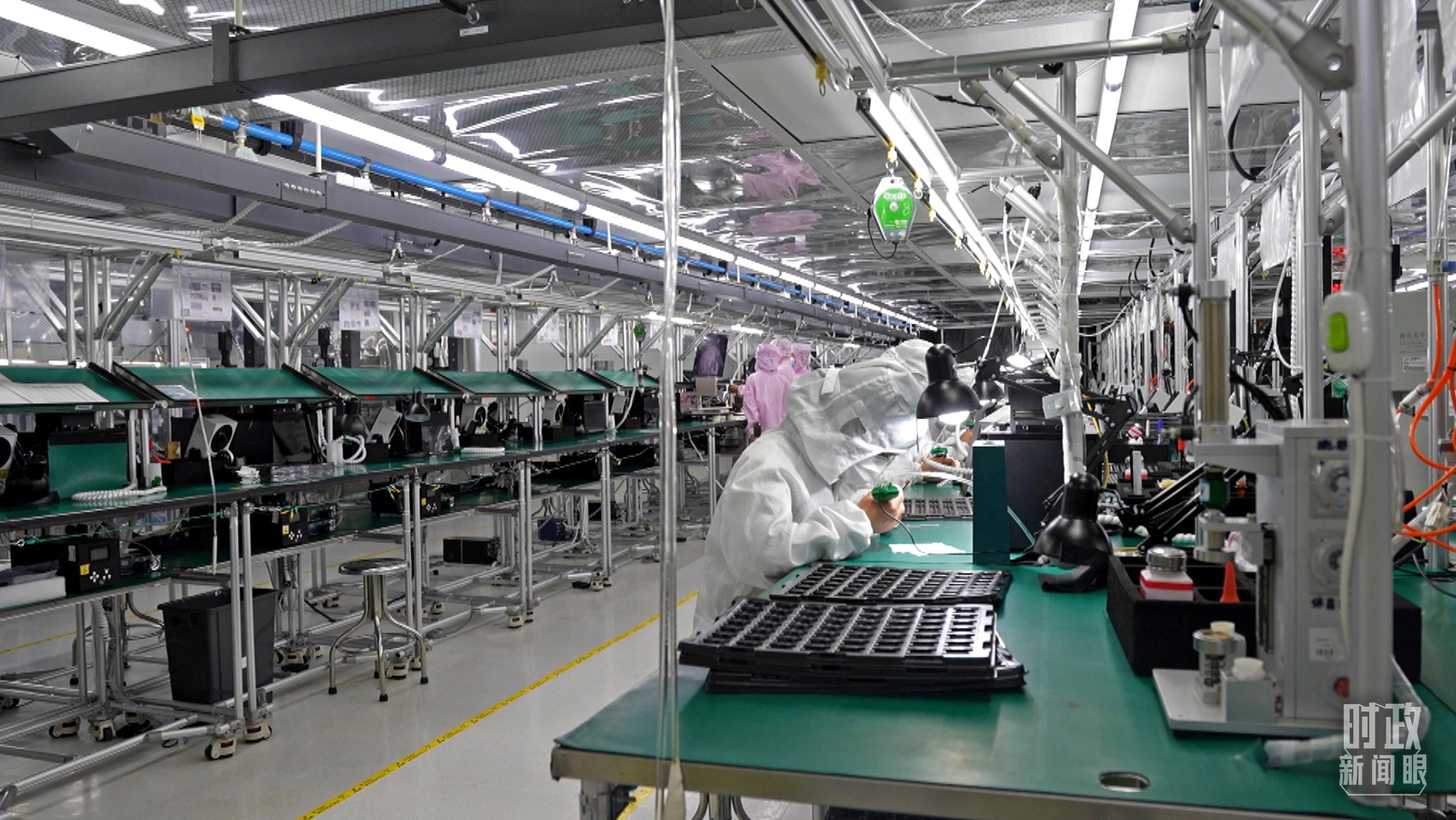 四川省宜賓市極米光電有限公司的無(wú)塵車(chē)間光機(jī)組裝線。(總臺(tái)央視記者范學(xué)禹拍攝)