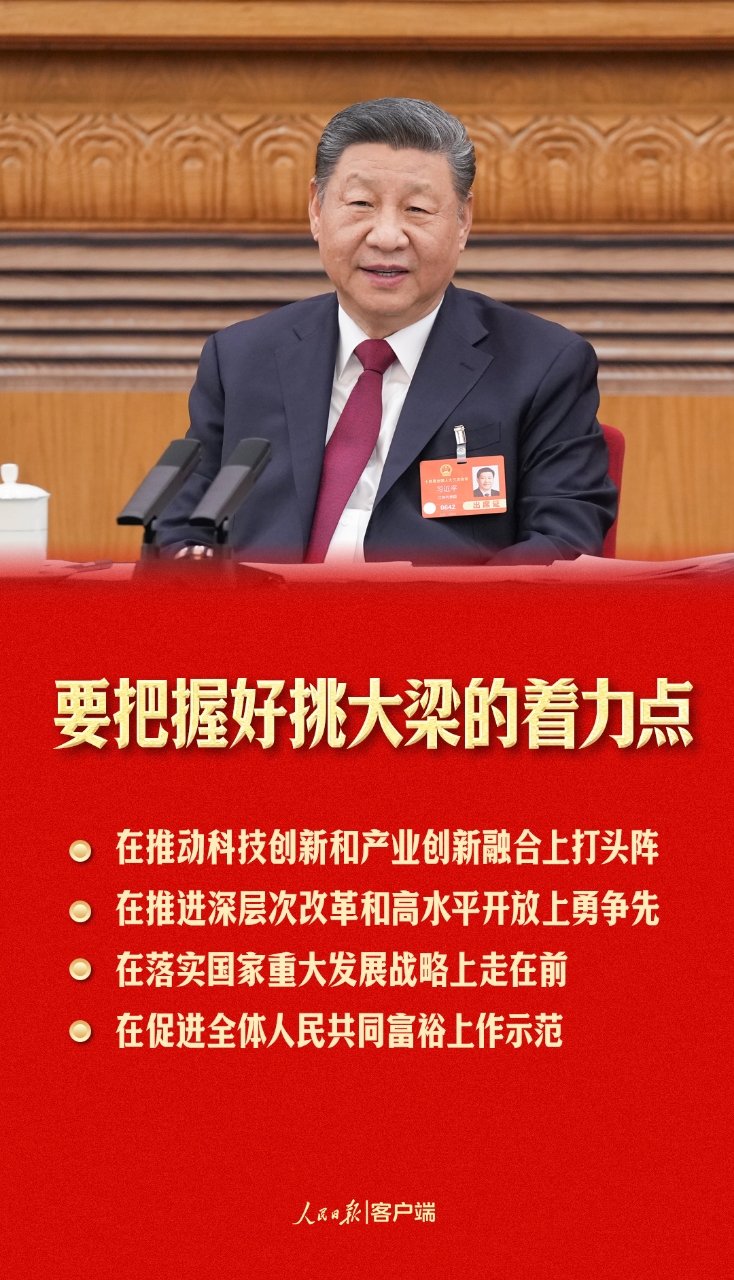 2023年1月,習(xí)近平總書(shū)記在江蘇當(dāng)選第十四屆全國(guó)人大代表。連續(xù)三年到江蘇代表團(tuán)參加審議,總書(shū)記都提到了“挑大梁”這個(gè)關(guān)鍵詞。