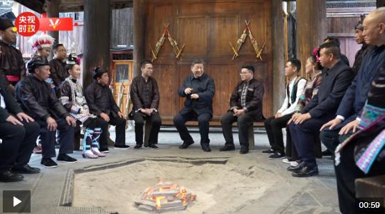 17日下午,習近平總書記來到貴州黎平縣肇興侗寨考察。在村寨的信團鼓樓,習近平同村干部和村民代表圍坐在火塘邊共話鄉(xiāng)村全面振興。大家你一言、我一語,爭相向總書記講述近年來的村寨變化和幸福生活。習近平高興地說,從你們的講述、你們的神情可以看出,村寨這些年欣欣向榮。現(xiàn)在旅游是一個很大的產(chǎn)業(yè),鄉(xiāng)村旅游如火如荼,民族地區(qū)要保留自己的特色文化,在文旅融合中更加彰顯它的光彩。祝你們的日子越過越紅火!