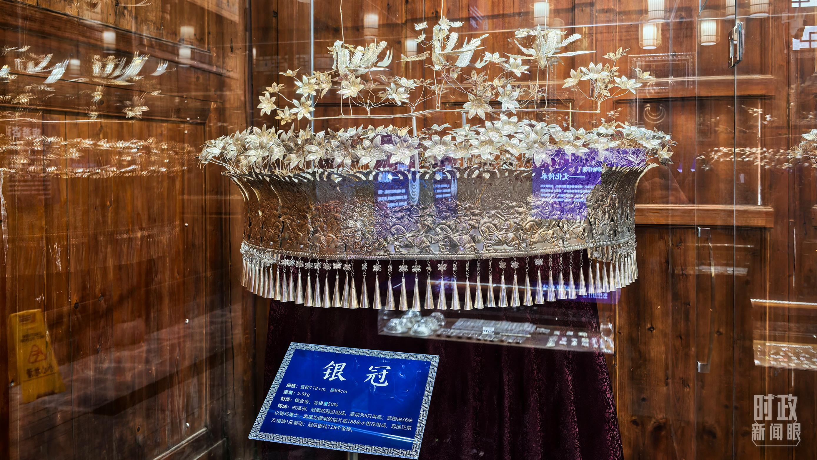 銀飾是侗族婦女的重要裝飾。圖為展示中心內(nèi)的銀冠。(總臺(tái)央視記者鄂介甫拍攝)