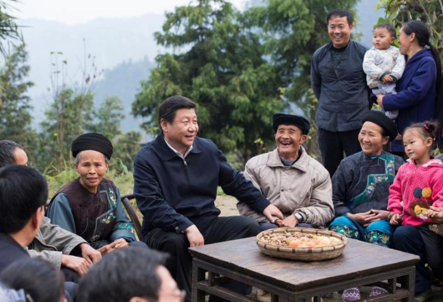 2013年11月3日,習(xí)近平總書記在湘西十八洞村考察時,同村干部和村民座談。