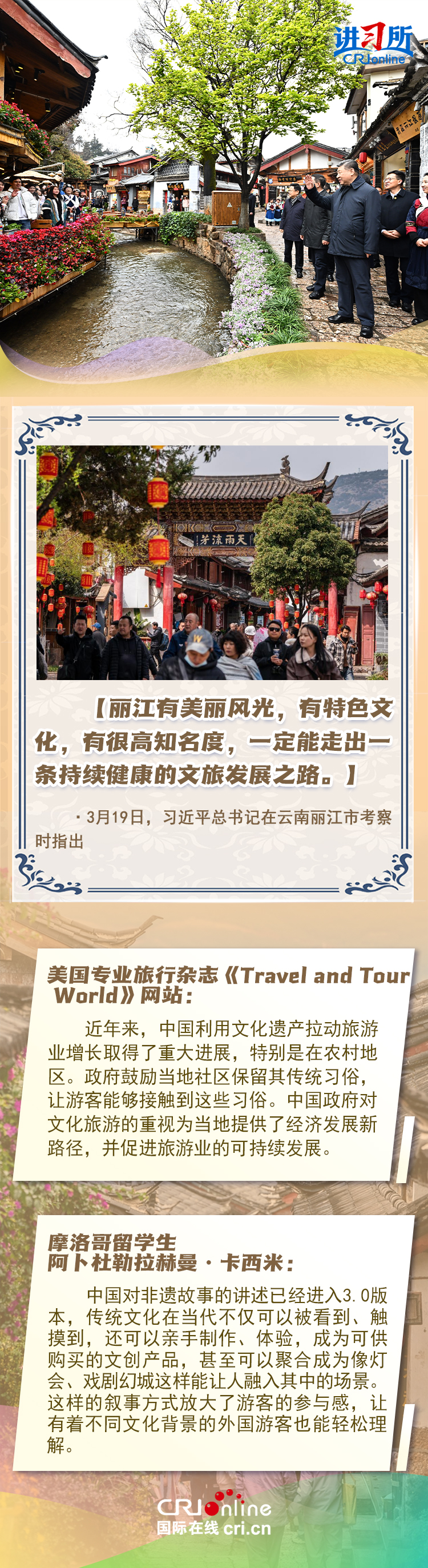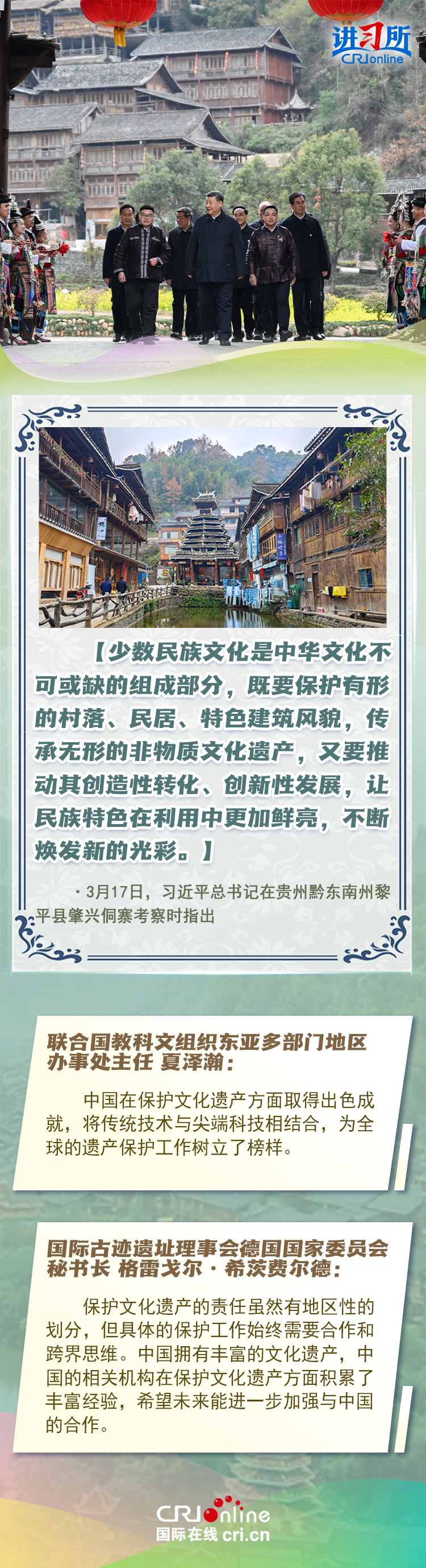 習(xí)近平總書記近日赴貴州、云南考察。他走進民族特色村寨、歷史文化古城,心系歷史文化遺產(chǎn)保護和文旅融合發(fā)展。習(xí)近平特別叮囑當(dāng)?shù)毓賳T和群眾,既要保護有形的村落、民居、特色建筑風(fēng)貌,傳承無形的非物質(zhì)文化遺產(chǎn),又要推動其創(chuàng)造性轉(zhuǎn)化、創(chuàng)新性發(fā)展。