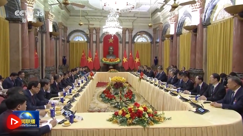 習(xí)近平強(qiáng)調(diào),中越雙方要以中越友好合作的穩(wěn)定性和社會主義制度的優(yōu)越性應(yīng)對外部形勢的不確定性,推動(dòng)中越命運(yùn)共同體航船沿著正確航道破浪前行。政治上要把住前行之舵,保持高層戰(zhàn)略溝通,加強(qiáng)治黨治國經(jīng)驗(yàn)互學(xué)互鑒,共同提高黨的領(lǐng)導(dǎo)能力,攜手走穩(wěn)走好各自社會主義道路。安全上要鑄牢團(tuán)結(jié)之錨,以兩國外交、國防、公安“3+3”戰(zhàn)略對話機(jī)制升格為契機(jī),持續(xù)深化防務(wù)和執(zhí)法安全合作,中方支持越方籌備好越共十四大,支持越方維護(hù)國家主權(quán)、安全、發(fā)展利益。經(jīng)濟(jì)上要執(zhí)穩(wěn)合作之楫,加強(qiáng)發(fā)展戰(zhàn)略對接,落實(shí)好共建“一帶一路”倡議和“兩廊一圈”框架對接合作規(guī)劃,深化鐵路、公路、航空多維互聯(lián)互通,保障產(chǎn)業(yè)鏈供應(yīng)鏈穩(wěn)定暢通,拓展5G、人工智能、綠色發(fā)展等新興領(lǐng)域合作,以新質(zhì)生產(chǎn)力賦能兩國全方位合作格局。人文上要揚(yáng)起友誼之帆,辦好今年“中越人文交流年”系列活動(dòng),實(shí)施更多“小而美”民生項(xiàng)目,通過文化、旅游、媒體、地方等交流,讓中越友好更加深入人心。