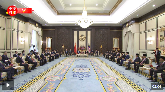 4月16日上午,馬來西亞最高元首易卜拉欣在馬來西亞國家王宮同中國國家主席習(xí)近平舉行會(huì)見。