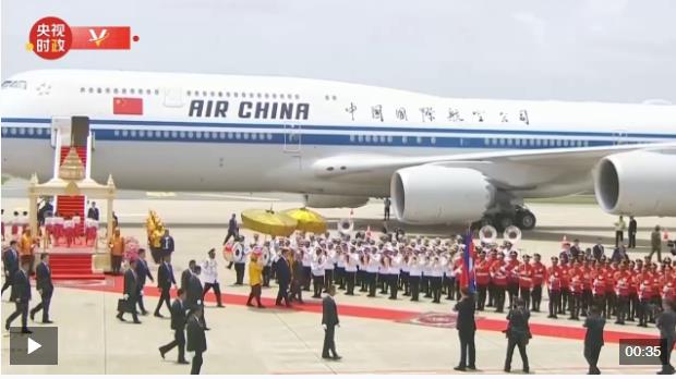 當(dāng)?shù)貢r(shí)間4月17日上午,國(guó)家主席習(xí)近平在柬埔寨國(guó)王西哈莫尼的陪同下檢閱柬埔寨儀仗隊(duì)。