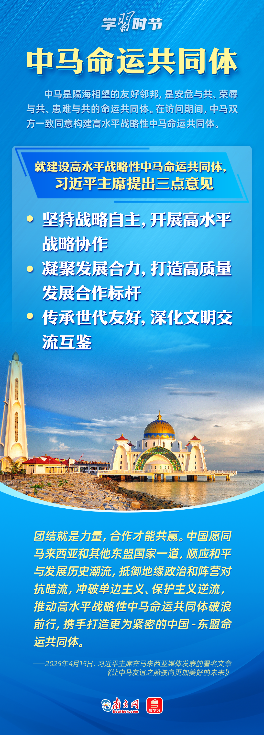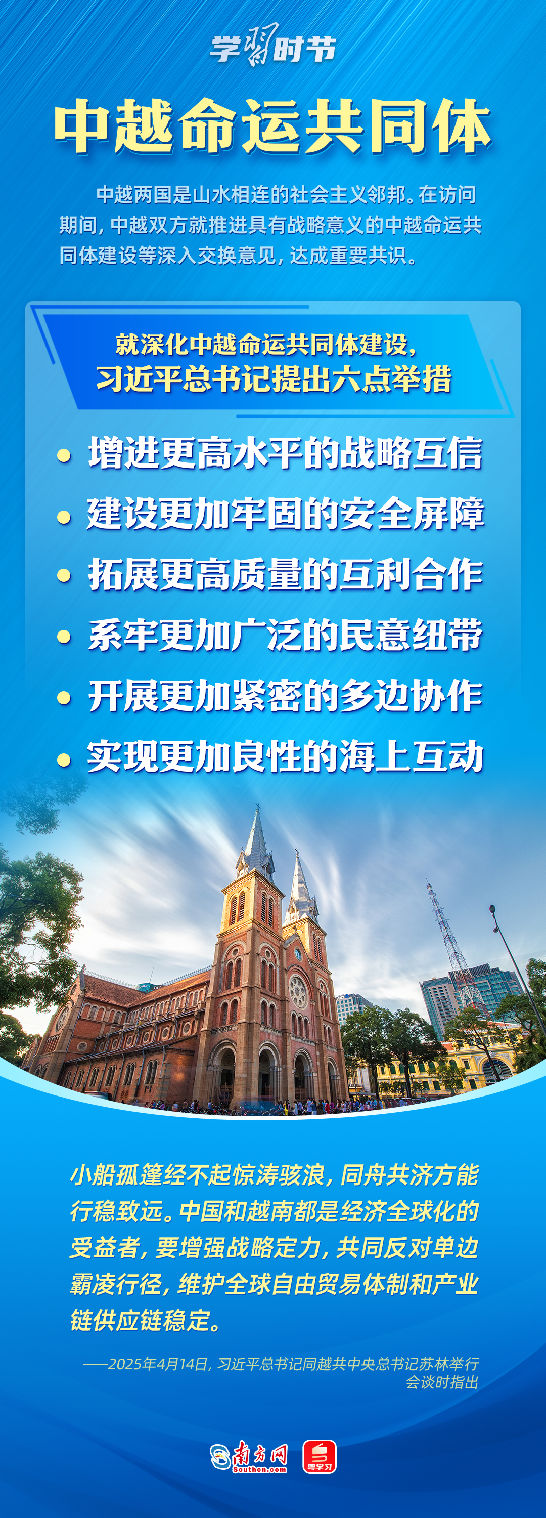 日前,中央周邊工作會議召開,強調(diào)要聚焦構建周邊命運共同體,努力開創(chuàng)周邊工作新局面。4月14日至18日,習近平主席出訪東南亞三國——越南、馬來西亞、柬埔寨。這是習近平主席今年首次出訪,對推動中國同三國關系發(fā)展具有重大意義,也為周邊命運共同體建設擘畫了新藍圖。