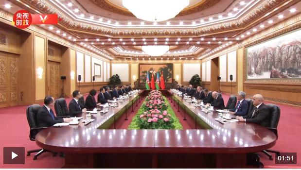 阿利耶夫說:“尊敬的習近平主席閣下,我多次應您的邀請訪問貴國,在我看來,這恰恰體現(xiàn)了兩國之間牢固的友誼。我每次來中國,都能看到貴國在您的英明領導下又取得了新的發(fā)展,阿塞拜疆堅定恪守一個中國原則。阿塞拜疆支持中國提出的共同構建人類命運共同體的理念,以及全球發(fā)展倡議、全球安全倡議、全球文明倡議?!?/p>