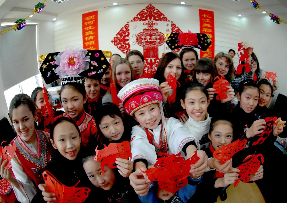 2008年12月30日,中俄學(xué)生在沈陽(yáng)“莫斯科學(xué)生體驗(yàn)中國(guó)冬令營(yíng)”活動(dòng)上展示自己的剪紙作品。