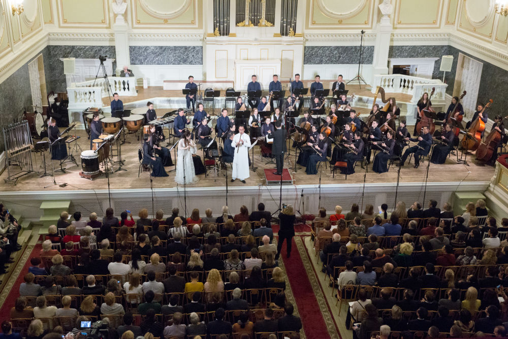 2019年11月13日,在俄羅斯圣彼得堡卡貝拉音樂廳,上海民族樂團(tuán)與安德烈耶夫國(guó)立模范民族樂團(tuán)的藝術(shù)家共同為觀眾獻(xiàn)上了一場(chǎng)名為《海上生民樂·和平頌》的精彩音樂會(huì),開啟了上海民族樂團(tuán)2019俄羅斯巡演之旅。