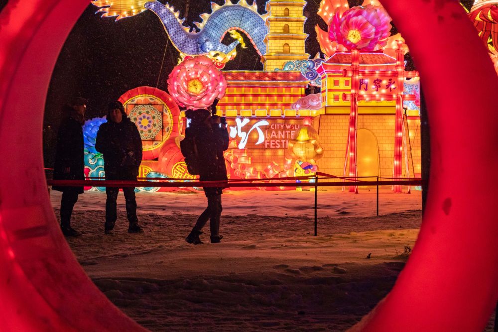 2019年12月4日,在俄羅斯首都莫斯科的中國(guó)彩燈節(jié)上,觀眾拍攝來自中國(guó)四川省自貢市的彩燈作品。