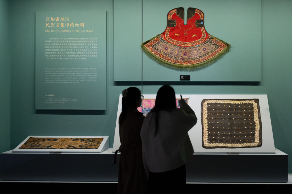 2024年11月22日,由湖北省博物館、俄羅斯民族博物館主辦的“傳統(tǒng)之繭:歐亞大陸民族文化中的絲綢——俄羅斯民族博物館藏文物展”在湖北省博物館開幕。這是參觀者在欣賞展品。