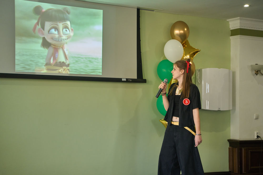 2025年4月10日,第24屆“漢語(yǔ)橋”世界大學(xué)生中文比賽俄羅斯賽區(qū)預(yù)選賽10日在符拉迪沃斯托克舉行。這是選手為電影《哪吒2》進(jìn)行配音表演。