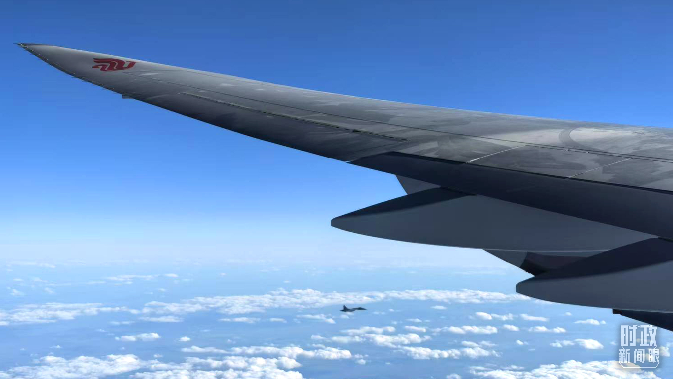 俄羅斯戰(zhàn)機(jī)升空護(hù)航。(總臺(tái)央視記者李錚拍攝)