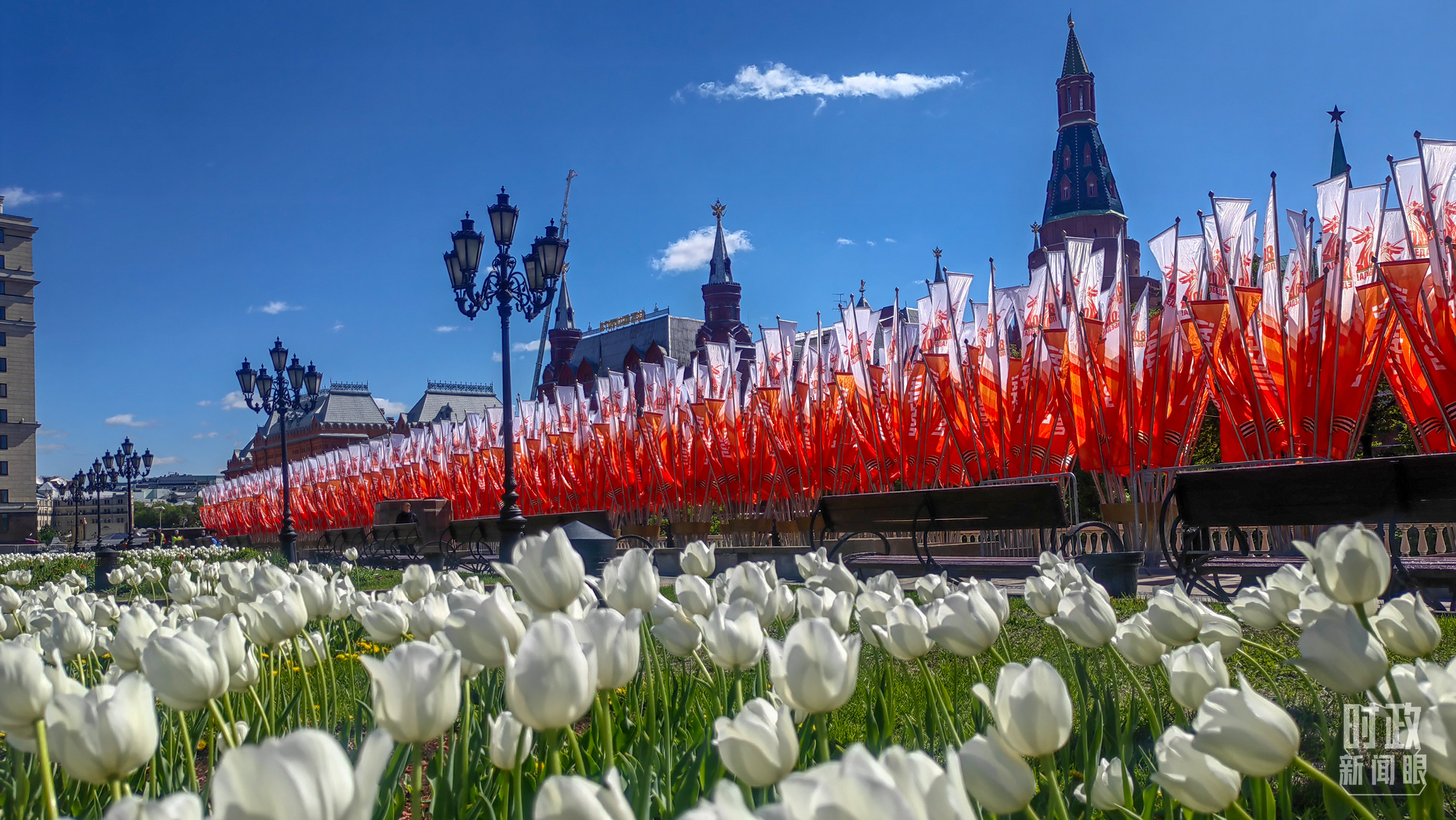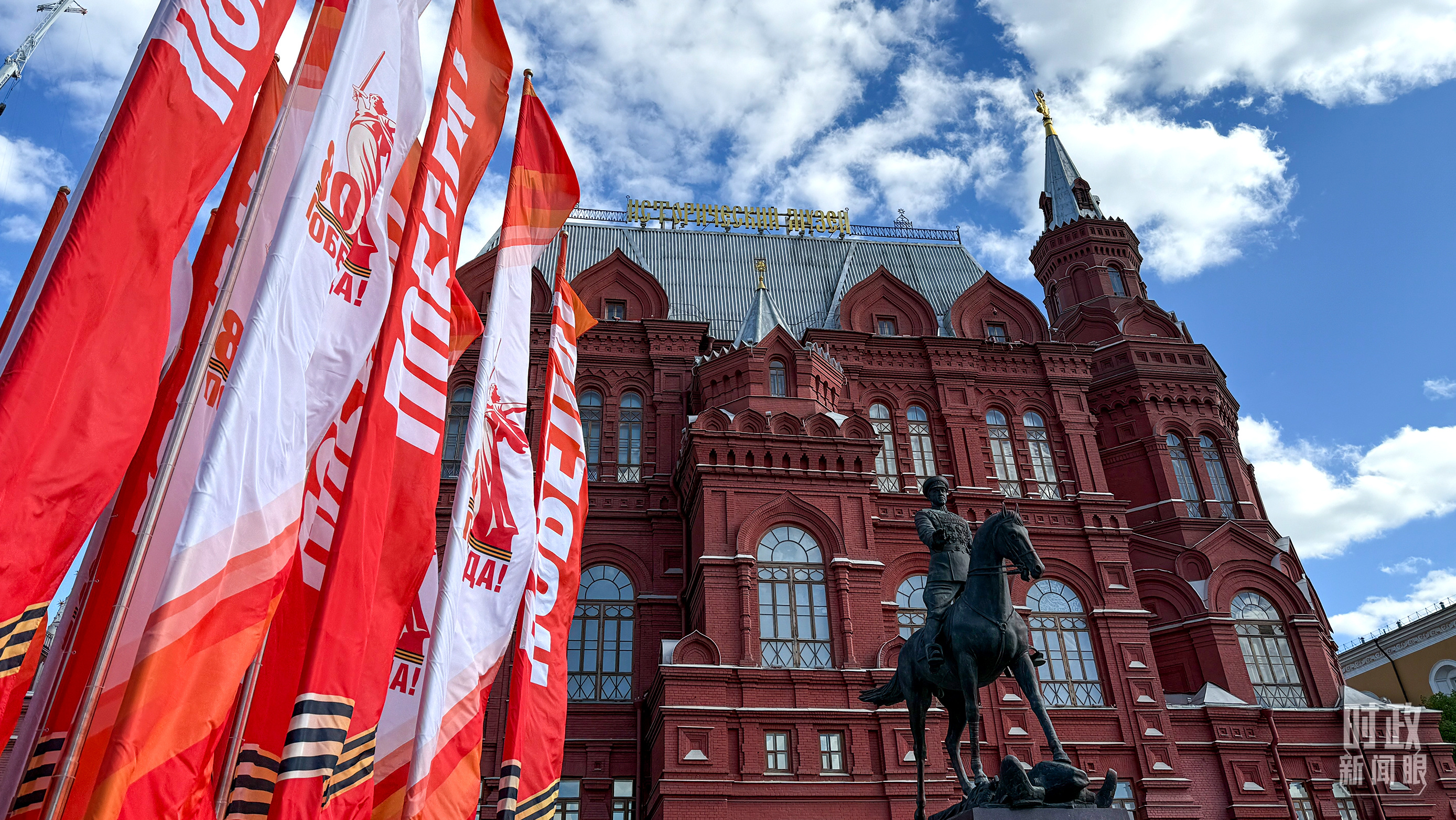 莫斯科街頭的勝利日旗幟。(總臺(tái)央視記者楊波拍攝)