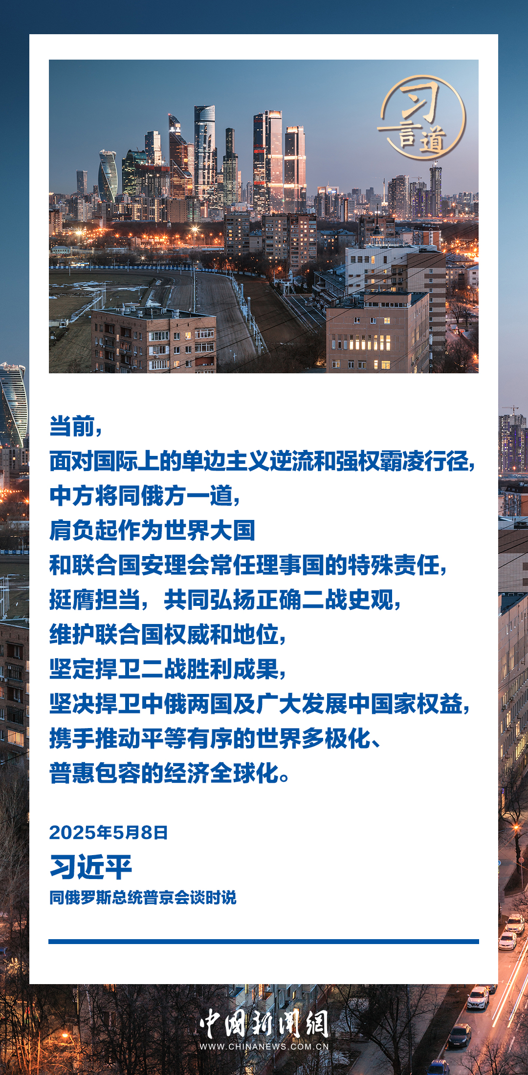 當(dāng)?shù)貢r(shí)間5月8日,俄羅斯總統(tǒng)普京同中國國家主席習(xí)近平在莫斯科克里姆林宮舉行會(huì)談。習(xí)近平指出——