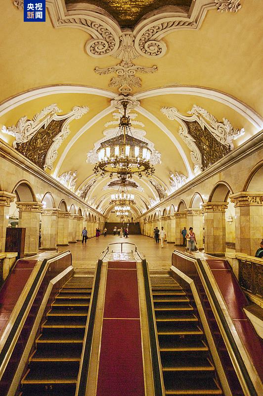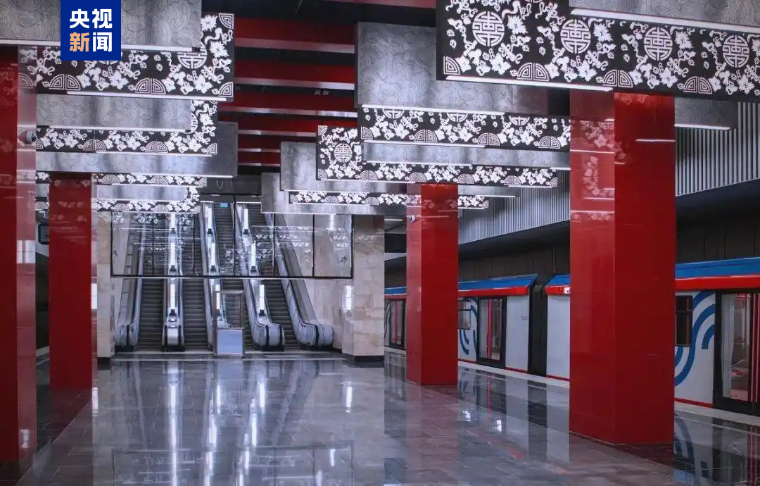 △莫斯科地鐵米丘林大街站由中企中標建設,地鐵站有紅色立柱、團壽紋、祥云等中國元素裝飾。