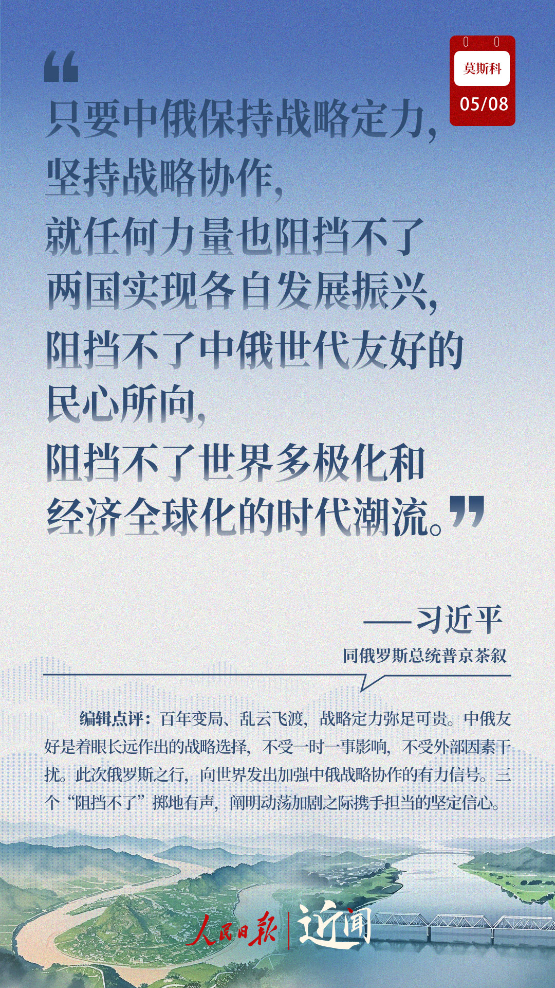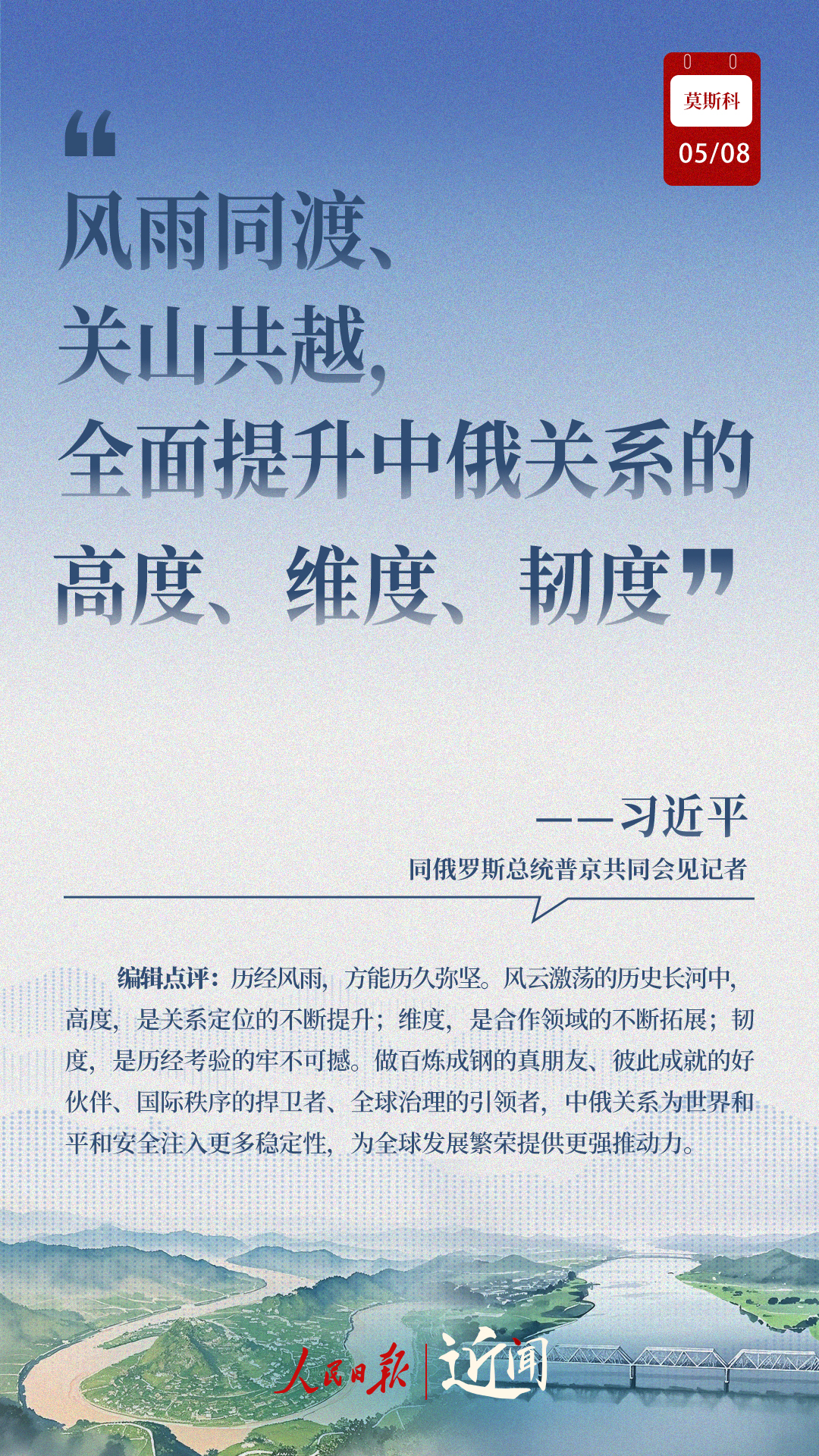 做百煉成鋼的真朋友、彼此成就的好伙伴、國(guó)際秩序的捍衛(wèi)者、全球治理的引領(lǐng)者,在紀(jì)念中國(guó)人民抗日戰(zhàn)爭(zhēng)、蘇聯(lián)偉大衛(wèi)國(guó)戰(zhàn)爭(zhēng)勝利和聯(lián)合國(guó)成立80周年之際,中俄新時(shí)代全面戰(zhàn)略協(xié)作伙伴關(guān)系進(jìn)一步深化。